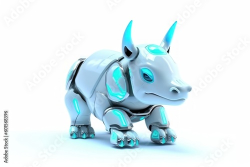 Fototapeta premium Rhino White Background Cyber Robot Toy And Copy Space Generative AI