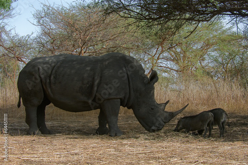 Fototapeta premium Rhinocéros et phacochères