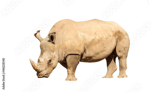 © Pb, Obraz premium Rhinoceros also known as rhino, Lonely specimen on a isolated white background