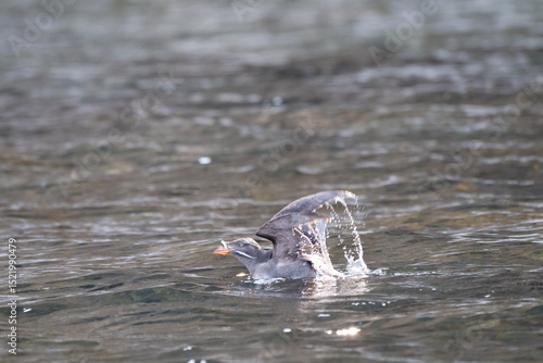 Fototapeta premium Rhinoceros Auklet taking off from surface of sea