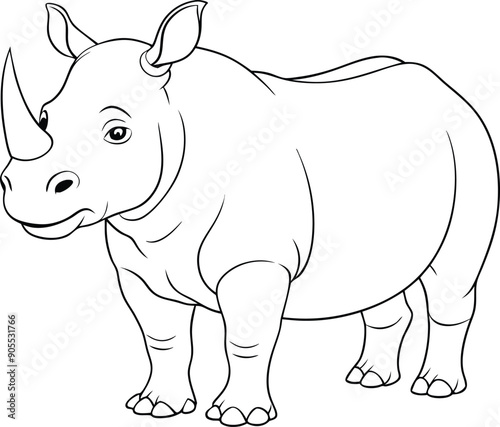 © MdHabibur, Naklejka premium Rhinoceros black and white silhouette vector line art illustration