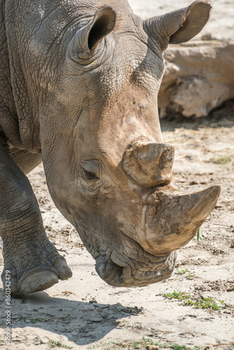 © Extraded, Obraz premium Rhinoceros close-up photo on a sunny day