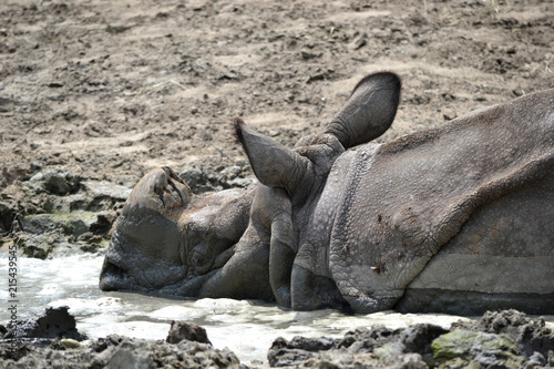 © PX Media, Naklejka premium Rhinoceros laying in mud