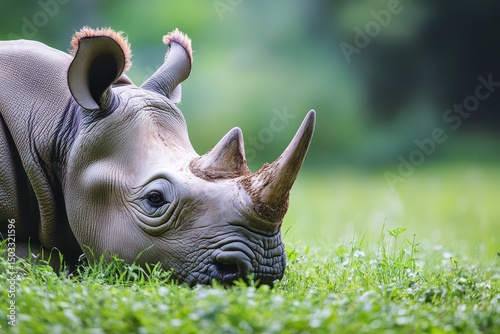 © Andrii, Fototapeta premium Rhinoceros on green grass in nature