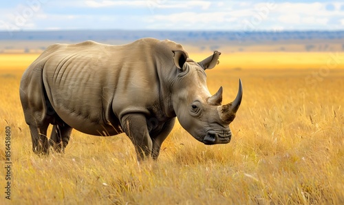 Fototapeta premium Rhinoceros on the grassland , Generative AI