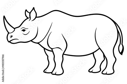 © pipp99, Obraz premium rhinoceros silhouette line art vector illustration with a white background