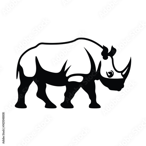 © Shahanur, Fototapeta premium Rhinoceros step icon minimal black silhouette