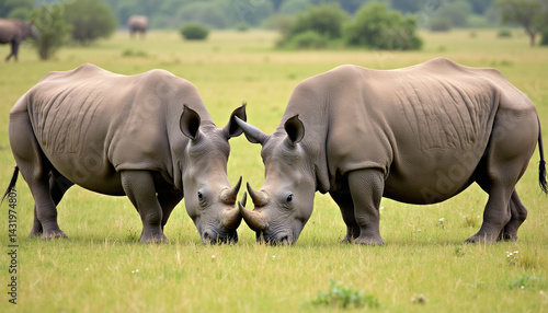 Obraz premium Rhinos Grazing in the African Landscape