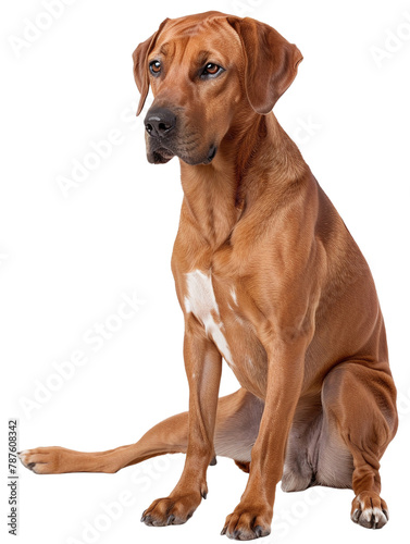© AmberMakesArtStuff, Obraz premium Rhodesian ridgeback dog, sitting, front view, clipping path, isolated
