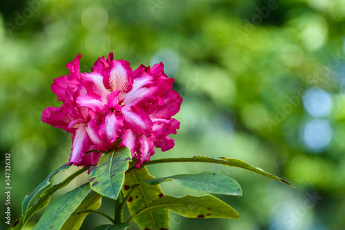 © knelson20, Fototapeta premium Rhododendron "Britts Treasure", closeup of pink and white flowers blooming