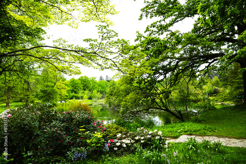 Obraz premium rhododendron bush in a botanical garden, munich bavaria