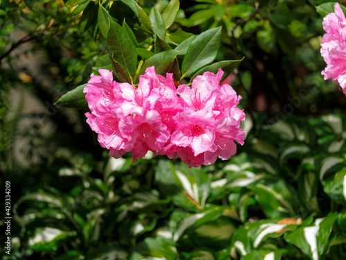 Fototapeta premium Rhododendrons bloom in the springtime under the bright sun