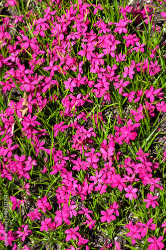 Fototapeta premium Rhodohypoxis milloides 'Claret' a flowering bulbous plant with a pink red...