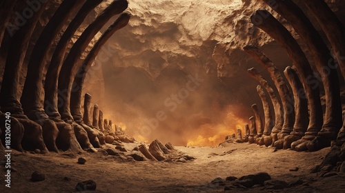 Fototapeta premium Ribbed Cavern Leading to Fiery Depths