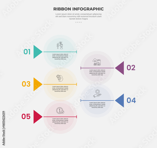Fototapeta premium ribbon base shape infographic outline style with 4 point template with transparent circle background with arrow pointer opposite direction for slide presentation