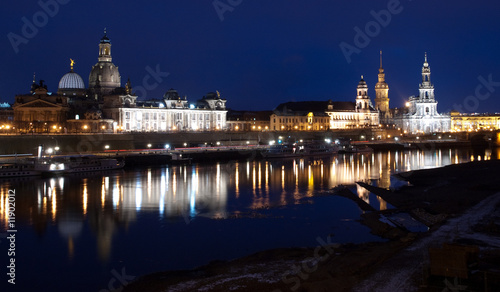 Obraz premium Ribera del Elba nocturna, Dresde