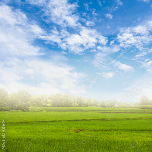 © Pheniti, Fototapeta premium Rice field against nice sky with clouds.