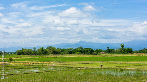 Fototapeta premium Rice field and blue sky with cloud