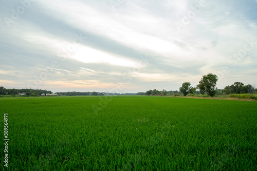 © Kampol, Fototapeta premium Rice field and sky background in thailand