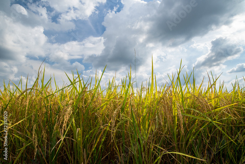 © touchsmile, Fototapeta premium Rice field gold and cloud sky