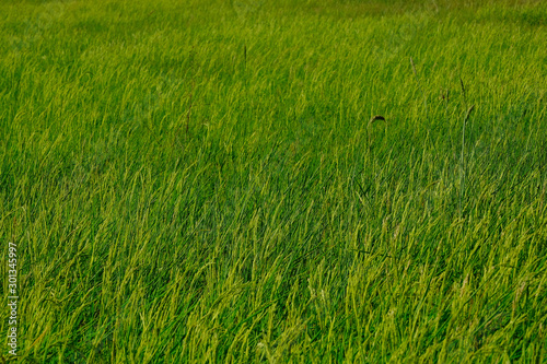 © Pongsatorn, Obraz premium Rice field in the countryside very green fresh in the farm.