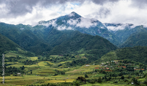 © Mumemories, Fototapeta premium Rice field in valley mountain with tribe village