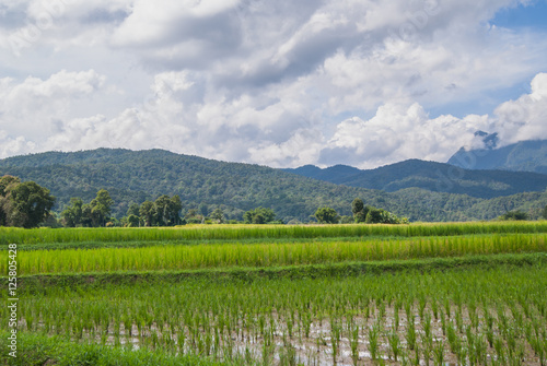 © Pararint, Obraz premium Rice Field Paddy Mountain Cloud
