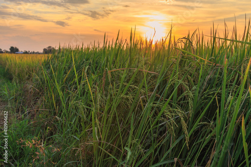 © NARONG, Fototapeta premium Rice fields and sunset sky view