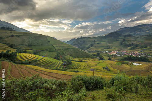 Naklejka premium Rice fields on terraced of Mu Cang Chai, YenBai, Vietnam