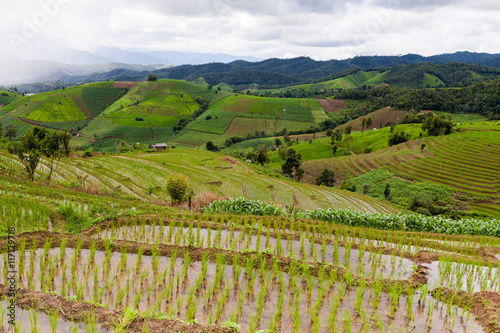 Fototapeta premium Rice fields on terraced of Pa Pong Pieng, Mae Chaem, Chiang Mai,