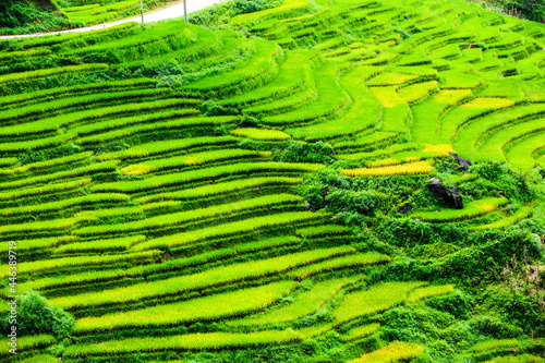 © CongHiep, Fototapeta premium Rice fields on terraced of Y Ty, Bat Xat, Lao Cai, Viet Nam. Rice fields prepare the harvest at Northwest Vietnam.Vietnam landscapes.