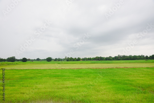 © Aphisith, Fototapeta premium Rice fields, young green rice plants