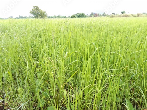 Obraz premium Rice green leaf natural background.