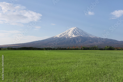 Fototapeta premium Rice in the rice farming area and have Mount Fuji in the daytime.