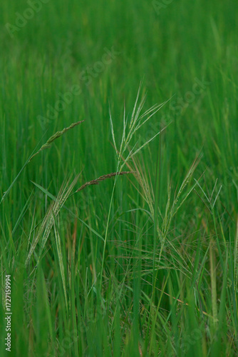 © Likhit Wongphen, Obraz premium rice landscape, green grass background. landscape from Thialand.