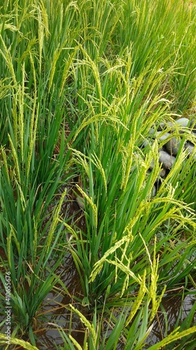 © Ade, Obraz premium Rice plants that start to turn yellow in the morning.