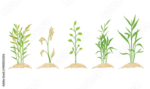 Obraz premium rice-related illustrations and smart farming technologies, focusing on grains, plants, cultivation, and innovative agricultural solutions for commercial use.
