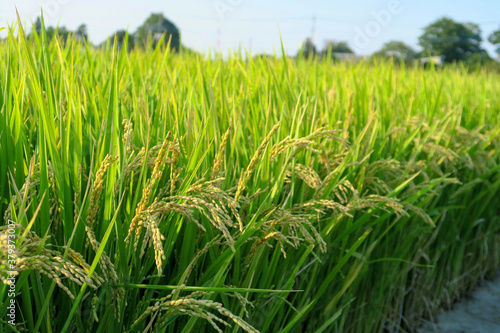 Obraz premium Rice stalk right before harvesting in Kasukabe, Saitama, Japan. September 21, 2020.