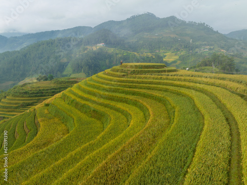 © Hanoi Photography, Fototapeta premium Rice Terraced field in harvesting season in Yen Bai, Vietnam