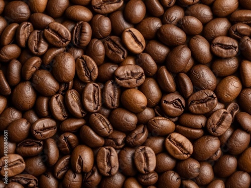 © Asif, Naklejka premium Rich, aromatic coffee beans create a textured background for morning energy.