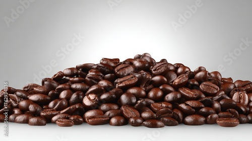 Naklejka premium Rich aromatic roasted coffee beans pile closeup perfect for brewing delicious...