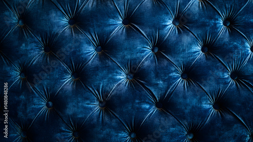 Fototapeta premium Rich blue tufted upholstery texture, perfect for adding elegance to any...
