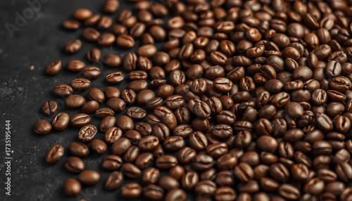 Naklejka premium Rich brown coffee beans scattered on dark surface, close-up, organic, aroma