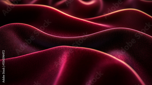 © VectroGraphy, Obraz premium Rich burgundy velvet fabric illuminated by soft light, creating a smooth and opulent texture with reflections