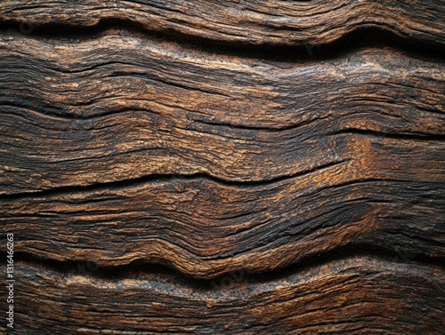 Naklejka premium Rich, Dark Brown Wood Texture with Deep Grain and Undulating Lines, Ideal for...
