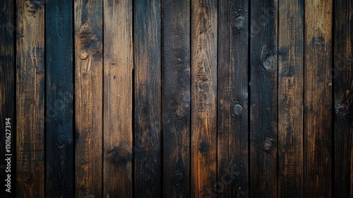 Naklejka premium Rich dark brown wooden texture with weathered planks, featuring deep grain...
