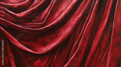 Fototapeta premium Rich, deep red velvet drapes with folds and texture.