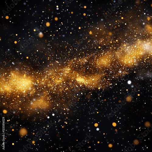 © Discover stocks, Fototapeta premium Rich luxurious holiday themed digital art piece showcasing a golden glittering snowfall with deep black shadows and elegant cosmic sparkles ar 169