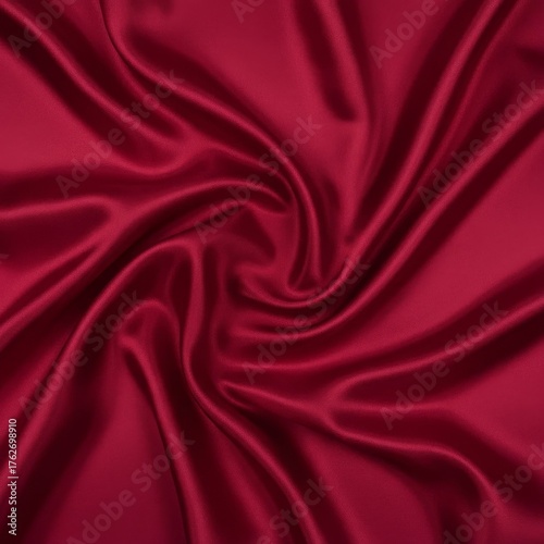 Fototapeta premium Rich maroon satin fabric with flowing folds and glossy texture