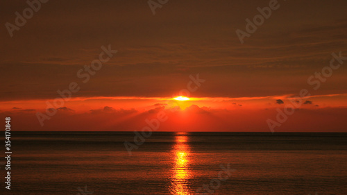 © Ирина Фроликова, Naklejka premium rich red sea sunset with light reflection in the water